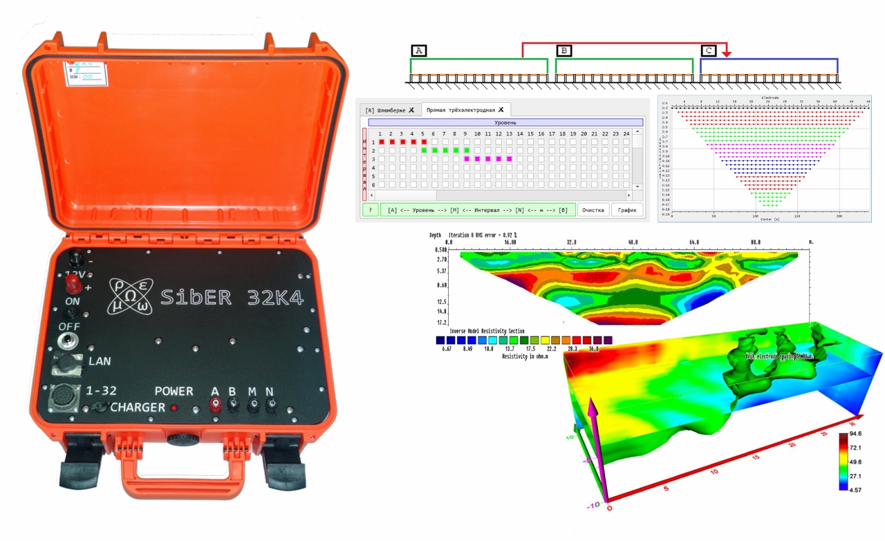 The equipment is designed to perform ground (including profile, areal, borehole) electrical exploration by methods of resistance and induced polarization in modifications of electrical tomography and vertical electrical sensing.